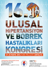 16. Ulusal Hipertansiyon ve Böbrek Hastalıkları Kongresi, 21-25 Mayıs 2014 tarihleri arasında Kaya Palazzo Otel / Belek / Antalya’da gerçekleştirilecektir.
